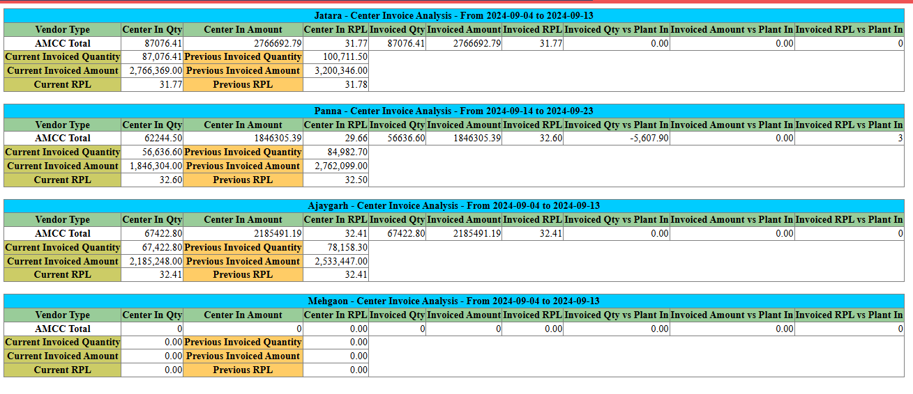 EasyDairyERP Procurement Dashboard Plant Vs Center Difference 1